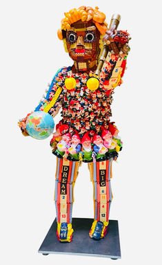 Um der kurzen Nutzungszeit entgegen zu wirken, verarbeitet Tamara Thompson Spielzeug von Kindern. Die Spielsachen, erst heiss geliebt, bespielt und intensiv genutzt, dann aber links liegen gelassen, verleihen den geschaffenen Skulpturen eine besondere Magie.